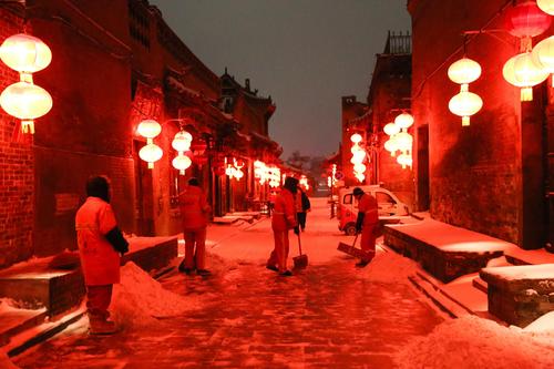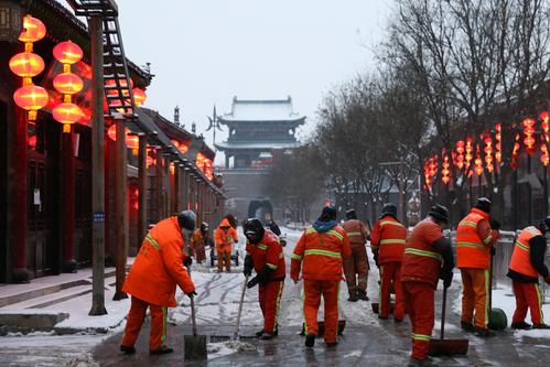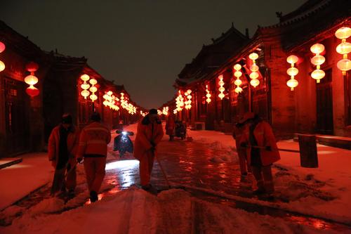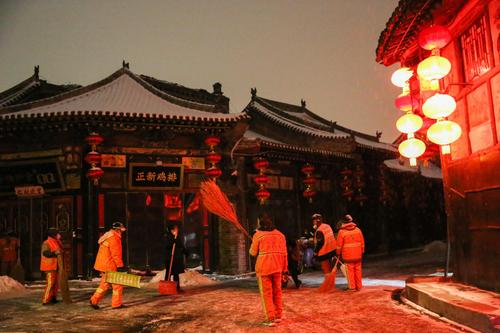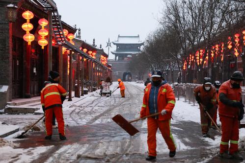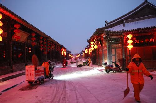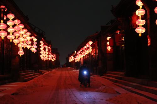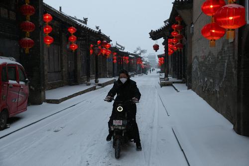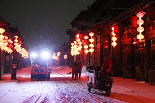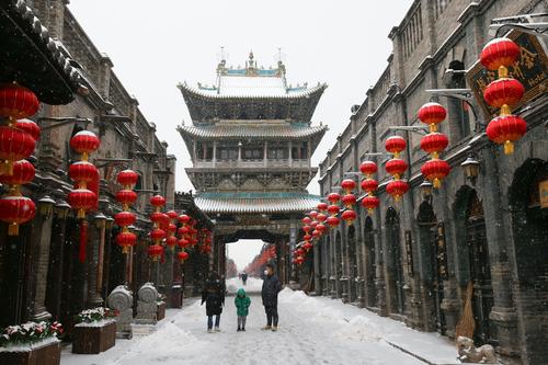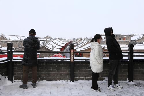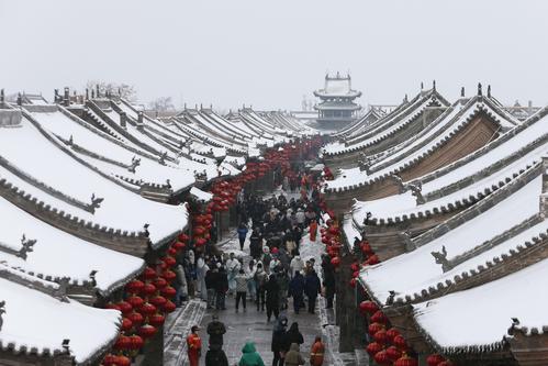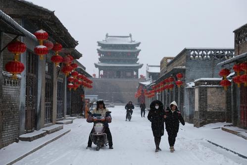 2023年1月14日,平遥古城迎来降雪天气。当日,以“金光耀古城 欢乐中国年”为主题的2023“我们的节日·春节——平遥中国年”活动在山西平遥古城启幕。