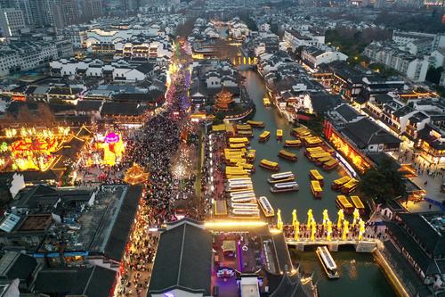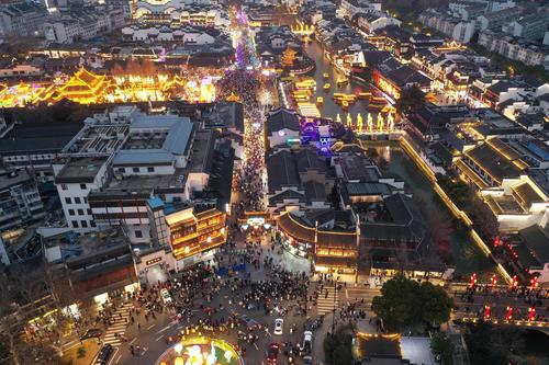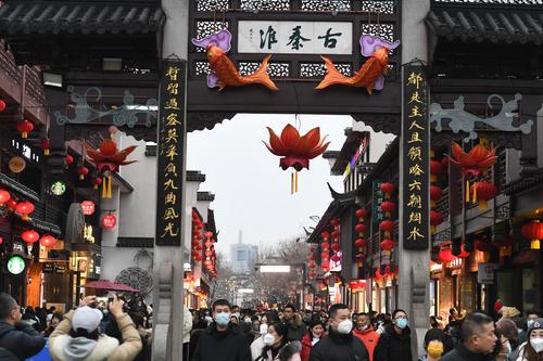 2023年1月26日,南京,当日,春节长假进入第6天,众多游客和市民来到南京夫子庙景区,逛庙会、选花灯,乐享假期。