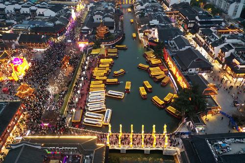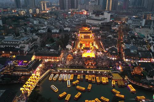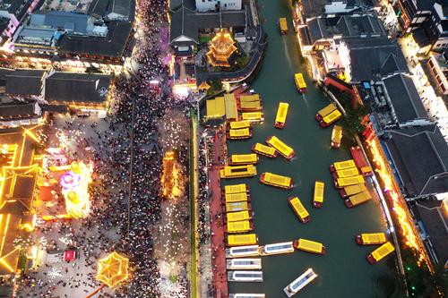 南京夫子庙迎来游客高峰