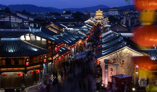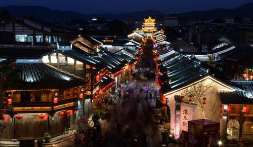 2023年1月26日,夜幕下的四川省凉山州西昌市建昌古城灯光璀璨、景色迷人。