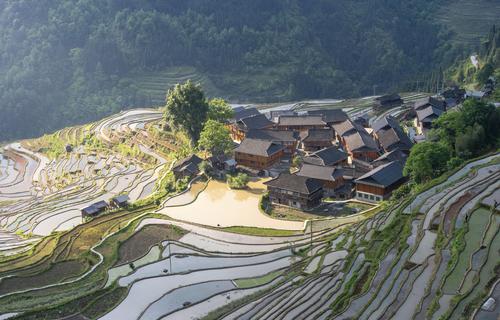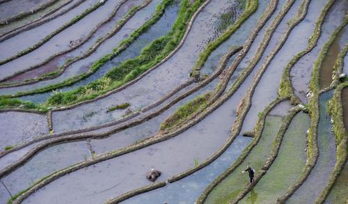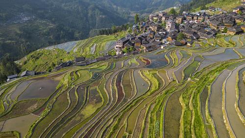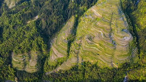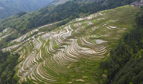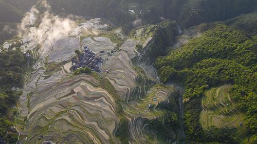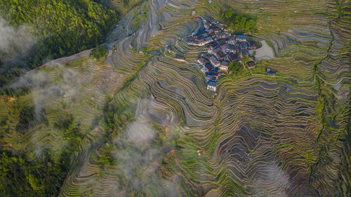 近日,位于贵州省黔东南苗族侗族自治州从江县加榜乡境内的梯田进入耕种期。镶嵌在大山里的梯田,层层叠叠,与青山、村落、云雾相映成趣,犹如“大地指纹”,美不胜收。