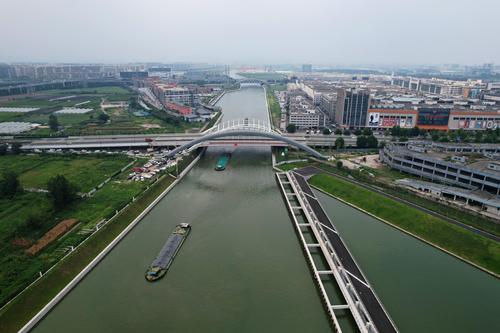 2023年7月18日,船舶行驶在京杭运河杭州段二通道上。