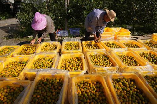 初冬时节,广西柳州市融水苗族自治县脆蜜金桔迎来丰收季,果农们抓住晴好天气采摘、分拣、运输,供应市场,果园里一片繁忙。近年来,广西柳州市融水苗族自治县通过建设脆蜜金桔标准化种植基地、拓展脆蜜金桔产业链条、探索“公司+基地+农户”发展模式等举措,推动脆蜜金桔产业高质量发展,带动农民增收致富,助推乡村振兴。