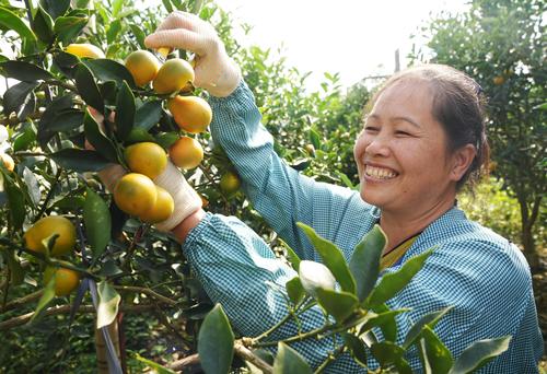 广西融水:脆蜜金桔丰收采摘忙