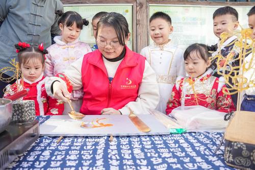 近年来,为让小朋友们对非物质文化遗产更好的认识和了解,该园定期开展糖画、剪纸、扎染等非遗项目兴趣课,让小朋友们通过实践传承非遗文化。