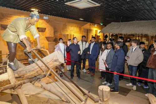 当日,在山东省滕州市美术馆、博物馆等非遗传承基地,来自清华大学国际班的外国学生,跟着非遗技艺传承人学习剪纸、书法,观看鲁班文化、滕州文物展览,近距离感受中华传统文化的魅力。