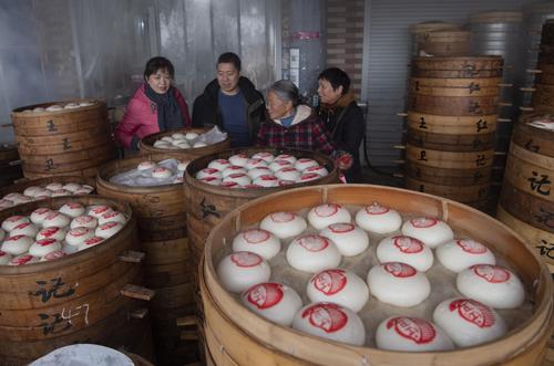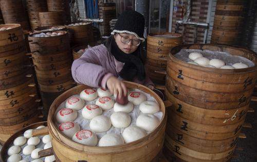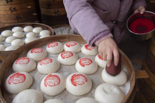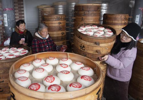 临近春节,金华馒头销售进入了销售旺季,馒头夹扣肉、馒头夹油炸臭豆腐,是当地百姓春节期间喜爱的传统美食。盖有红印的圆馒头,寓意着“团团圆圆、蒸蒸日上”,寄托着百姓新年的美好愿望。