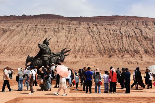2024年5月2日是“五一”小长假第二天,新疆吐鲁番火焰山景区游人如织,日接待游客数量突破1万人次。