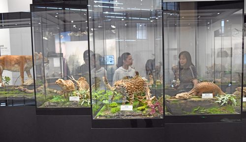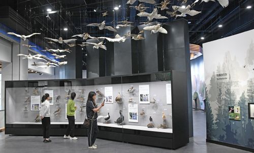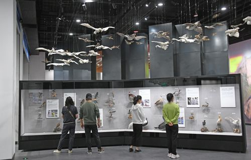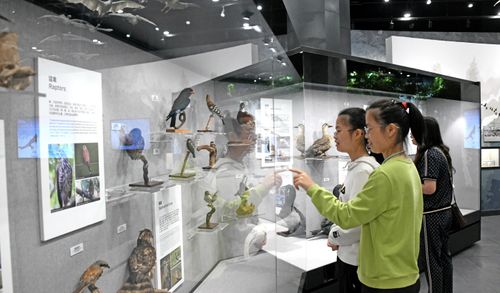 2024年5月22日,市民在浙江省台州市仙居生物多样性博物馆参观生物展品,学习生物多样性知识。
