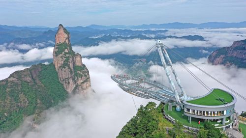 2024年7月14日,浙江省台州市仙居县神仙居景区云雾缭绕,群峦若隐若现,宛若仙境。