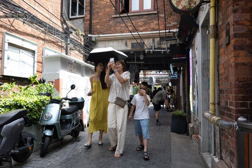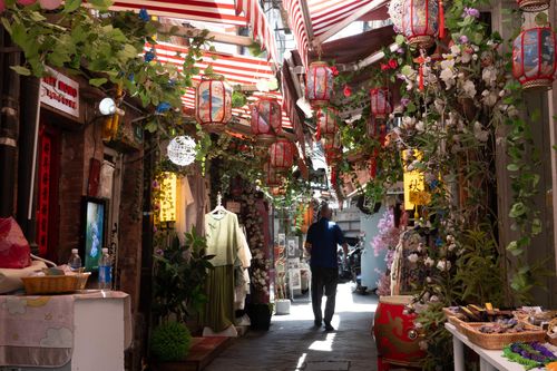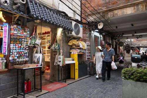 2024年7月16日,盛夏时节,上海黄浦区田子坊内游客如织,石库门弄堂景区内店招林立,夏日风景独好。