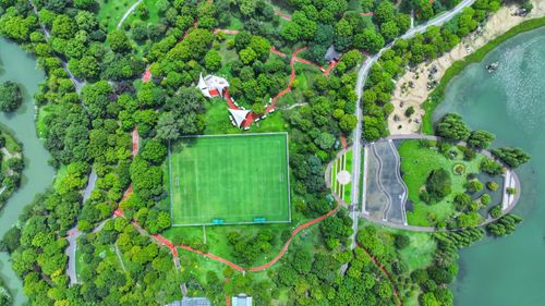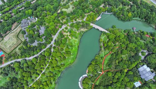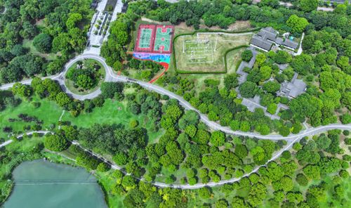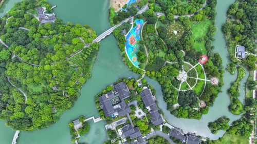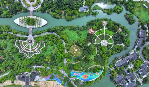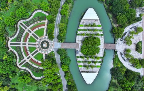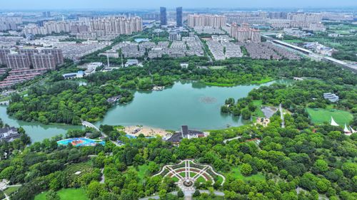 2024年8月15日是第二个全国生态日,俯瞰江苏省张家港市梁丰生态园,绿草如茵,树木繁茂。