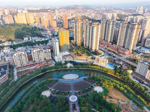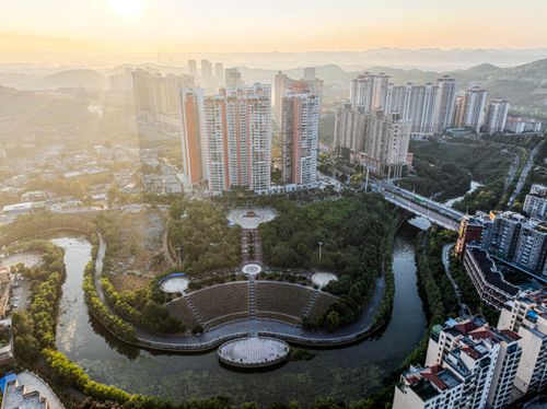2024年9月5日,贵州省黔西市莲城,一栋栋楼房拔地而起,与蜿蜒河道、城内绿荫交相辉映,绘就一幅新时代市城画卷。