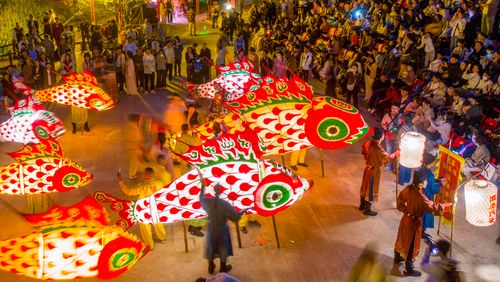 河南洛阳:赏鱼灯非遗民俗 丰富假期夜生活