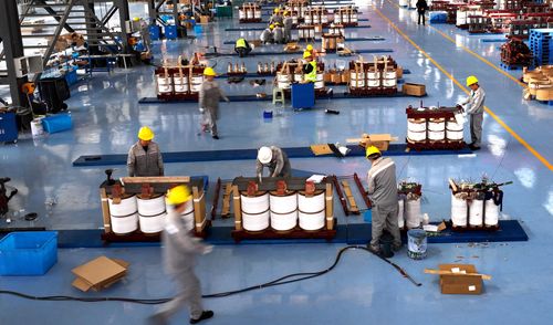 2024年11月5日,江苏海安,在位于高新区的江苏亚威电气集团内,员工正在加紧组装新能源变压器等出口订单。该公司是一家国家级专精特新“小巨人”企业,目前出口产品主要销往欧美、中东、东南亚等海外市场。