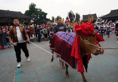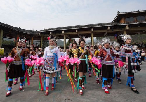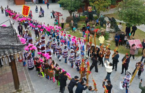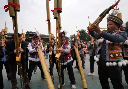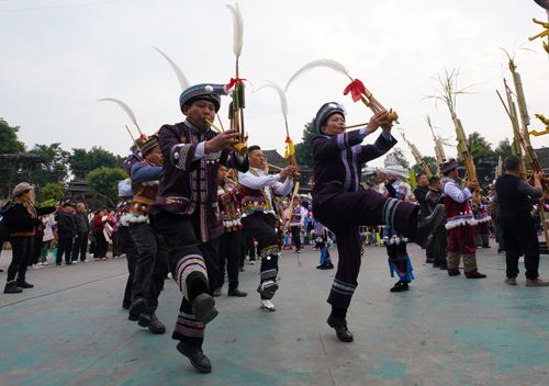 2024年12月22日,广西融水苗族自治县梦呜苗寨举办“打同年”活动,当地苗族同胞与该县安太乡三合村来的“同年”们欢聚一堂,唱苗歌、吹芦笙、跳踩堂舞等,喜迎即来到来的新年。