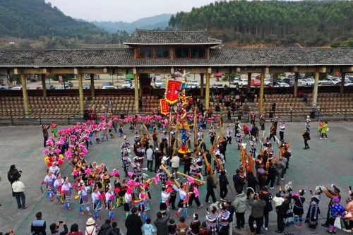 “打同年”是融水苗、侗等少数民族群众村与村之间开展的一项联谊活动,分为迎同年、结同年和送同年,当地俗称“打老庚”,意为交朋友、结兄弟,现在已发展成为多民族的集体交流活动,参加活动的村民互称“同年”。