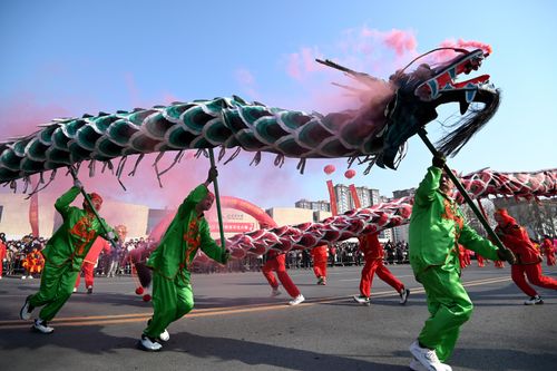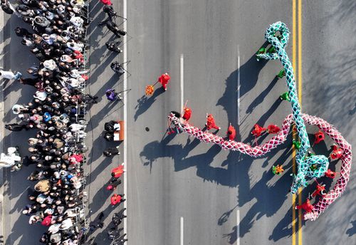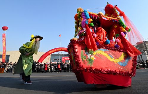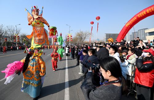 2025年2月10日,河北省邯郸市峰峰矿区举行2025年“成语邯郸 峰光无限”元宵民俗文化巡游展演活动,苇子灯阵、跑竹马、跑旱船、舞龙、背阁等46个节目轮番上演,约3000名表演者为市民和游客带来一场精彩纷呈的民俗文化盛宴,让群众在互动体验中欢欢喜喜闹元宵。