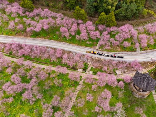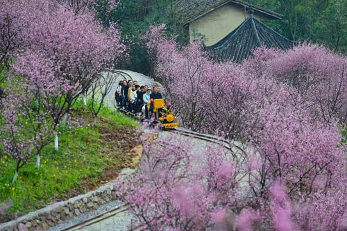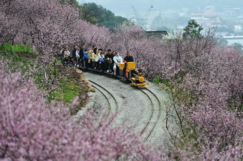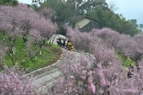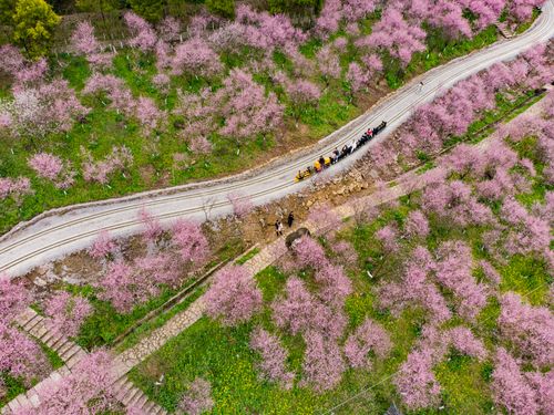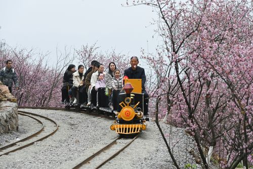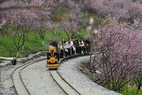 2025年3月9日,重庆市沙坪坝区的红岭溪谷景区,游客乘坐景区的“小火车”畅游花海,乐享美好春光。当下进入重庆春季赏花的最佳时节,该景区的郁金香、骨里红梅、美人梅、樱花、紫甘蓝、金鱼草等肆意绽放,美不胜收。今年该景区增加了花海小火车、爬山车、丛林穿越等项目。游客乘坐“花海小火车”游览花海,沿途的骨里红梅、油菜花和美人梅等映入眼帘,感受春日浪漫乐享美好春光。