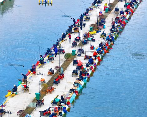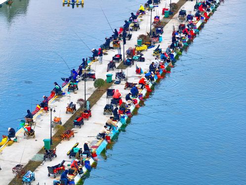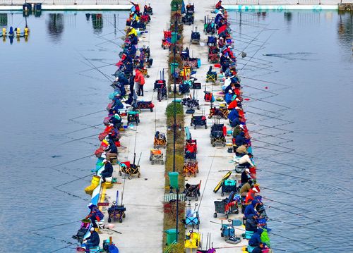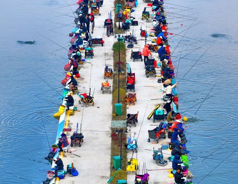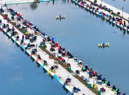 2025年3月16日,江西省抚州市金溪县琅琚镇枫山村的一处乡村垂钓基地,许多中老年垂钓爱好者在进行路亚钓、飞绳钓等专业化钓鱼竞技比赛。