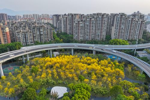 2025年3月26日,位于福建省福州市仓山区的黄花风铃木公园,因缓堵工程尤溪洲南立交提升改造完毕后重新开放,园内700多株黄花风铃木竞相绽放,新增的儿童乐园、篮球场等休闲设施,成为市民春日踏青、休闲的好去处。