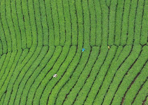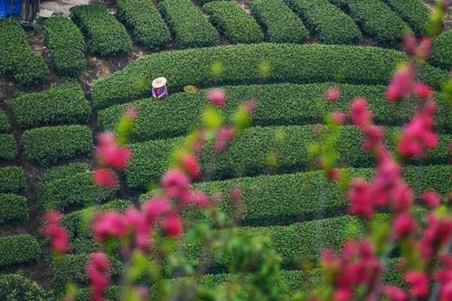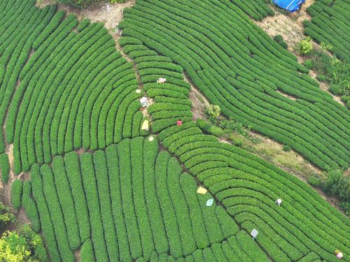 暮春时节,广西贺州市昭平县26万多亩的茶园进入采摘高峰期,茶农穿梭在错落有致的茶园忙碌,身影宛如跳动的音符,弹奏出春天里的美好乐章。