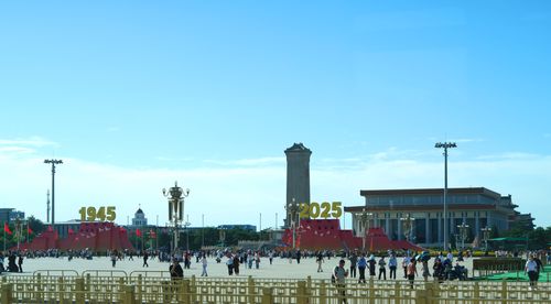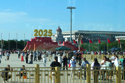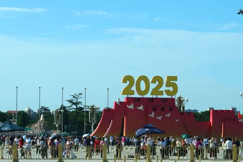2025年9月8日,北京天安门广场迎来众多市民和游客,他们在纪念中国人民抗日战争暨世界反法西斯战争胜利八十周年大会的标志性景观前参观游览,重温纪念大会激动人心的时刻。