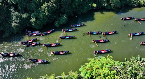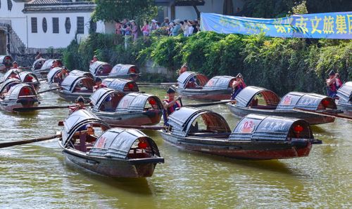 浙江绍兴:76艘乌篷船竞渡浙东运河迎国庆