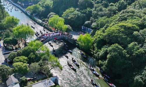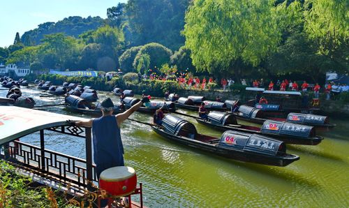 来自绍兴东湖、大禹陵、柯岩风景区、安昌古镇等全市乌篷船运营单位的近百名船工参赛。同时面向全国招募的40位中外游客同船共渡一同见证比赛盛况。