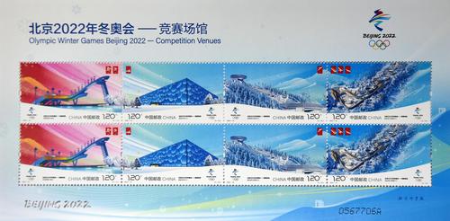 6月23日,中国邮政发行《北京2022年冬奥会——竞赛场馆》纪念邮票一套4枚,小型张1枚,全套邮票面值为10.80元。《北京2022年冬奥会——竞赛场馆》纪念邮票内容包括首钢滑雪大跳台、国家游泳中心、国家跳台滑雪中心、国家雪车雪橇中心,小型张为国家速滑馆。
