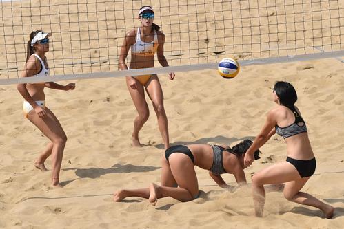 2023年8月25日,江苏省南京市,2023年全国青年U系列沙滩排球锦标赛(南京汤山站)进入第二日赛程。