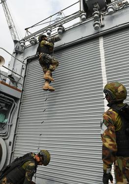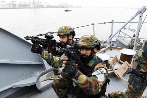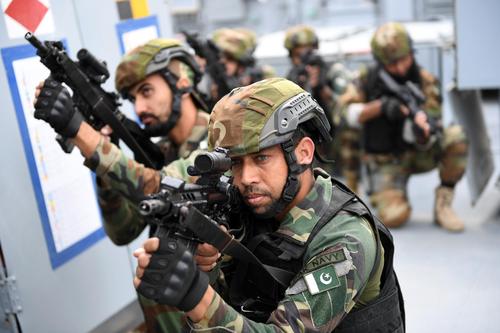 当地时间2020年1月7日,“海洋卫士-2020”中巴联合演习进入第二天,中巴海军在巴基斯坦卡拉奇港同步连续开展了一系列港岸交流活动,进一步磋商海上演练科目,商定演练规则,开展研讨交流和陆战队联训,并组织拔河、足球和篮球等体育活动。