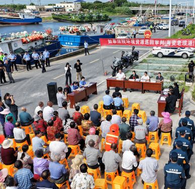 2025年9月11日,江苏省如皋市人民法院环境资源法庭在海安市滨海新区老坝港社区,对海安市公安局办理的一起非法捕捞水产品案件进行巡回审判,通过以案释法,进一步提高当地渔民保护渔业资源和生态环境的意识。