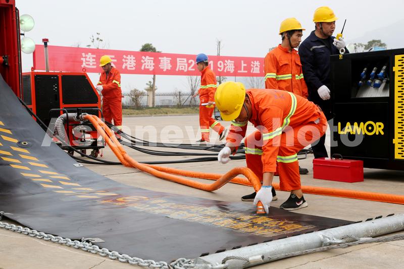 2019年10月22日,江苏省连云港市海事局联手连云港太和船舶清理公司首次举行海上船舶溢油应急演练,共同应对海洋污染突发事件,共有10艘船舶、80余名溢油应急人员,开展了包括围油栏布设与回收、溢油围控等多科目的溢油应急演练。