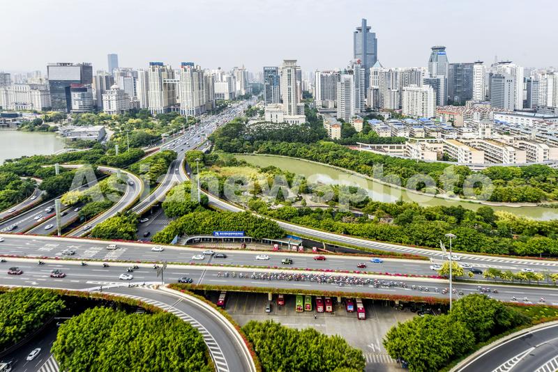 2019年10月20日,“格力·环广西公路自行车世界巡回赛”进入第四天。南宁-弄拉景区赛段在广西南宁市发车。图为车队穿过美丽的南宁市区向马山县弄拉景区进发。