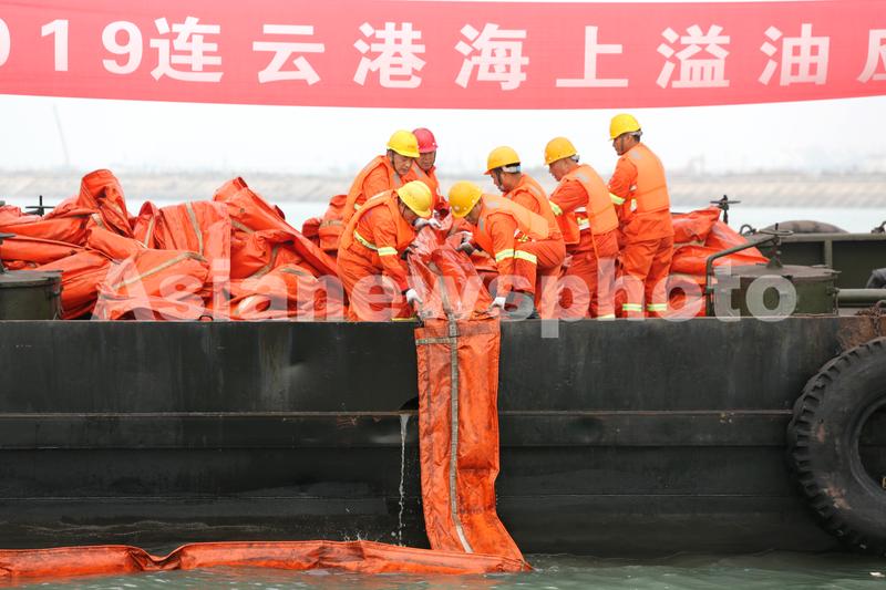 2019年10月22日,江苏省连云港市海事局联手连云港太和船舶清理公司首次举行海上船舶溢油应急演练,共同应对海洋污染突发事件,共有10艘船舶、80余名溢油应急人员,开展了包括围油栏布设与回收、溢油围控等多科目的溢油应急演练。