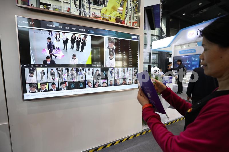 图片说明:10月21日,观众在互联网之光博览会上华为展台体验人脸识别技术。