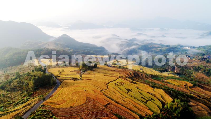图片说明:2019年10月29日清晨,浙江省台州市仙居县,雨后的杨丰山梯田云雾缭绕。