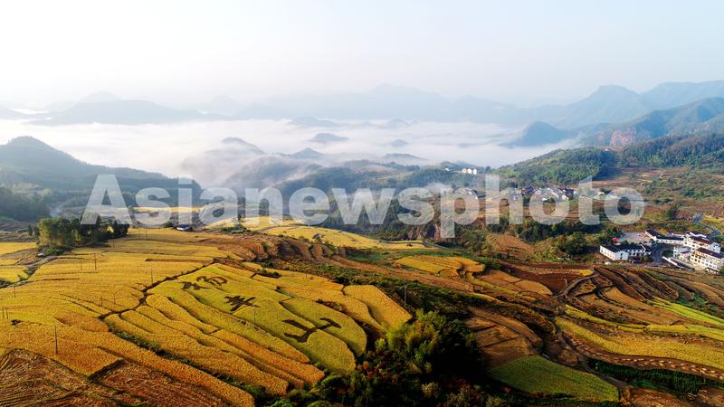 图片说明:2019年10月29日清晨,浙江省台州市仙居县,雨后的杨丰山梯田云雾缭绕。