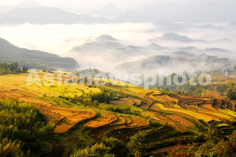 图片说明:2019年10月29日清晨,浙江省台州市仙居县,雨后的杨丰山梯田云雾缭绕。
