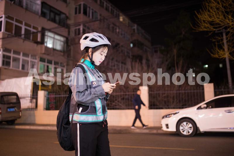 图片说明:2019年3月27日,山东省青岛市,杨雪绒在路上等候接单。