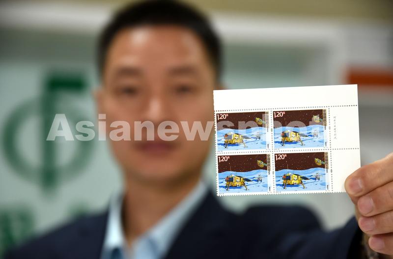 图片说明:11月1日,中国邮政集团公司邯郸市分公司的工作人员展示《科技创新(二)》“嫦娥四号”主题纪念邮票。