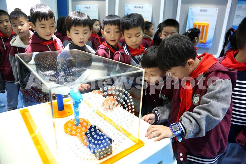图片说明:11月5日,连云港市连云区院前小学的学生们在参观校园科技馆。