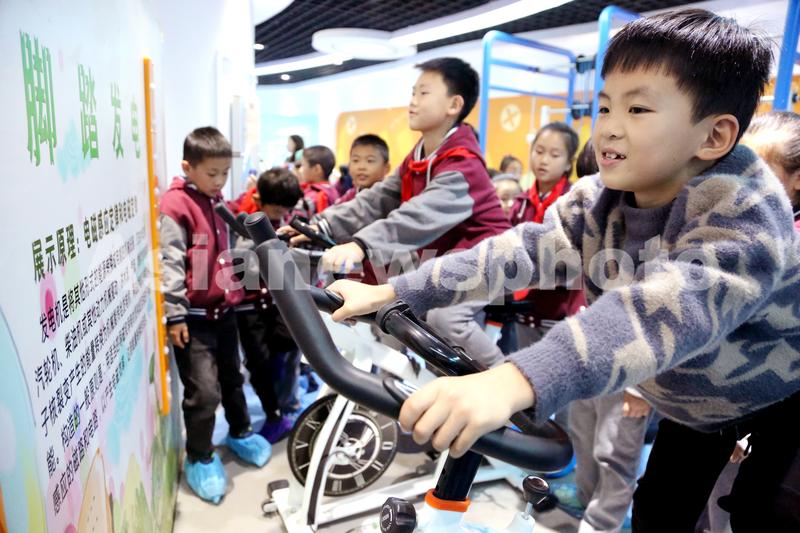 图片说明:11月5日,连云港市连云区院前小学的学生们在参观校园科技馆。