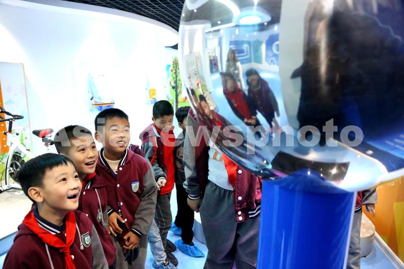 图片说明:11月5日,连云港市连云区院前小学的学生们在参观校园科技馆。