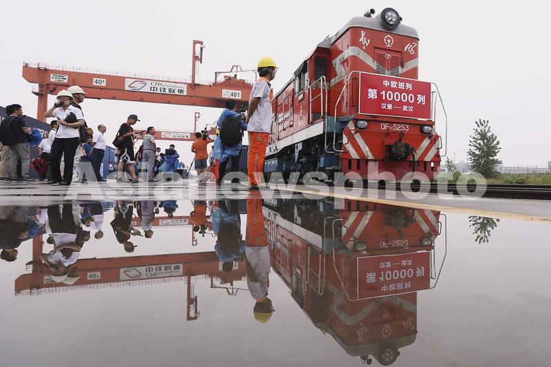 图片说明:2018年8月26日,湖北武汉,由德国汉堡出发的X8044次中欧班列抵达武汉吴家山铁路集装箱中心站。至此,中欧班列累计开行数量已达到10000列。 邹红 摄