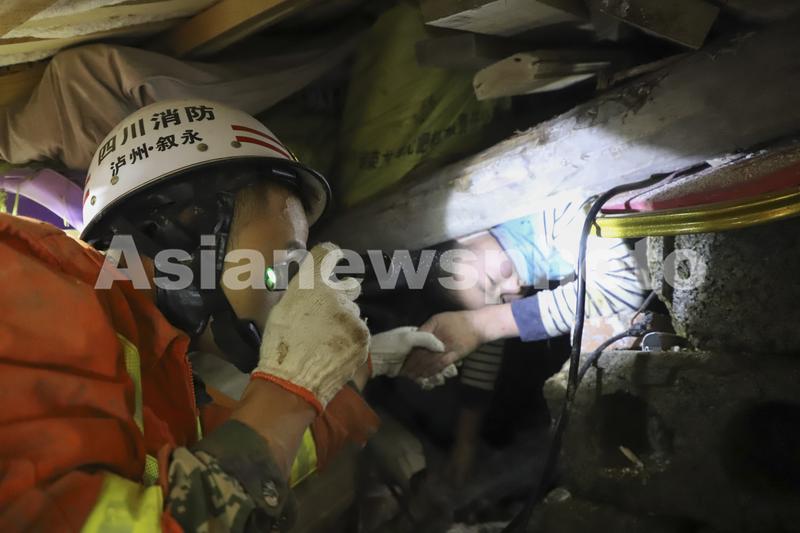 图片说明:2018年12月9日,四川叙永,消防员在分水镇营救山体滑坡被埋人员。此次灾难导致部分民房垮塌多人被埋。 罗光链 摄