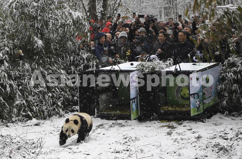 图片说明:2018年12月27日,四川成都,中国大熊猫保护研究中心在龙溪-虹口国家级自然保护区将两只大熊猫“琴心”、“小核桃”放归野外。这是首次在成都区域放归人工圈养繁殖的大熊猫。 李传有 摄