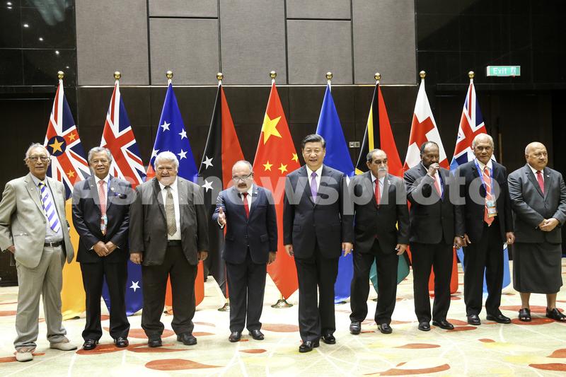 图片说明:2018年11月16日,巴布亚新几内亚首都莫尔兹比港,国家主席习近平同建交太平洋岛国领导人举行集体会晤并合影。 冯永斌 摄