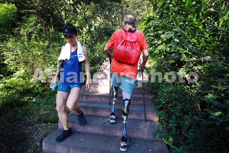 2018年8月21日,夏伯渝戴着假肢攀登北京香山公园,与登山爱好者擦肩而过。